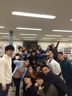 写真は、今回の新歓の演出と役者たち。全員揃い踏み!