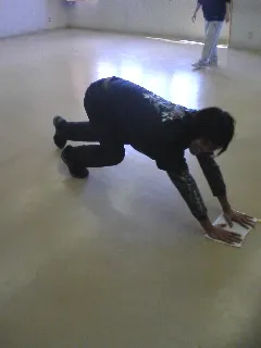 役者さんのために率先して、さっそうと稽古場をぞうきんがけ! ありがとうございます◎