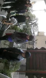 本日の稽古場は、いつもよりたくさんの人であふれかえっていました。 大人数で殺陣の練習をしていたようです。 寒空の下に、殺陣の声が響きわたっていました。