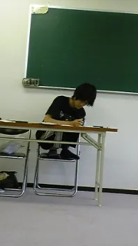 おっと、もちろん熱心なのは役者だけじゃありませんぜ! スタッフさんもそれぞれの仕事に精一杯頑張っています。 今回舞台監督として重大なポジションに初挑戦の、一回生ライスくん。