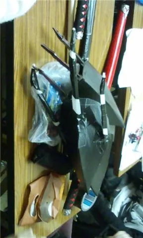 稽古で本番用の小道具を使うと本番までにボロボロになってしまうので、仮の小道具を用意するんですねー。それにしても仮とは思えないクオリティです。