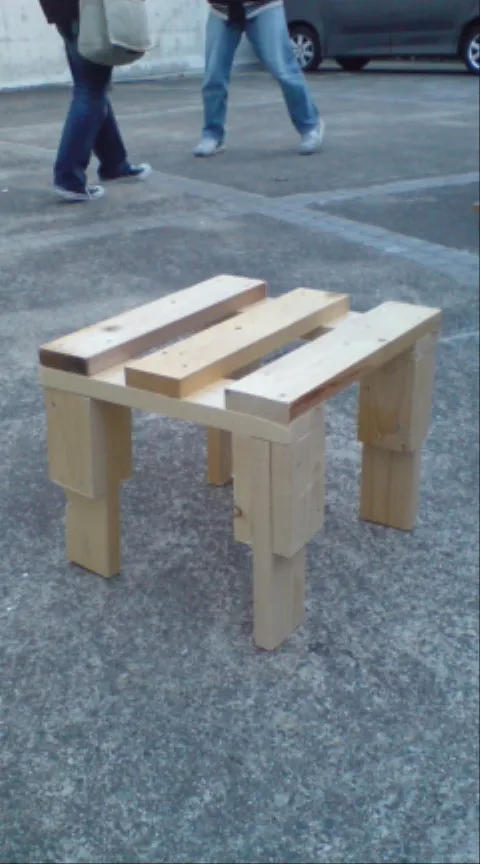 S棟にあったイスを参考に組んでみたら、 人が乗って跳んだりしても大丈夫な強度になりました。