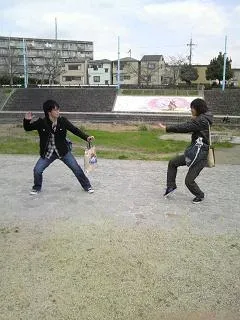 これは、朝練をしている二人です。 いや、よく見たら稽古とは関係ないことしてるやん!