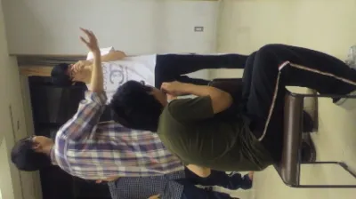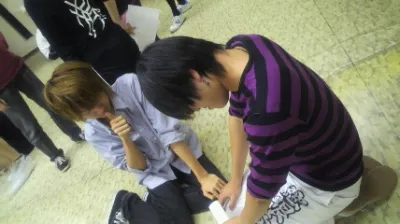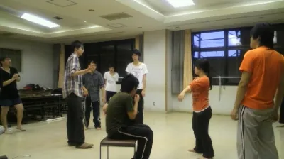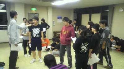写真は即興芝居のワンシーンなんですが、途中から小学生の休み時間のノリに。 おおよそ大学生には見えませんね…。なんだか懐かしい気持ちになりました(笑)