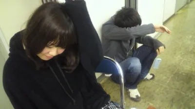 これは、朝練をしている二人です。 いや、よく見たら稽古とは関係ないことしてるやん!